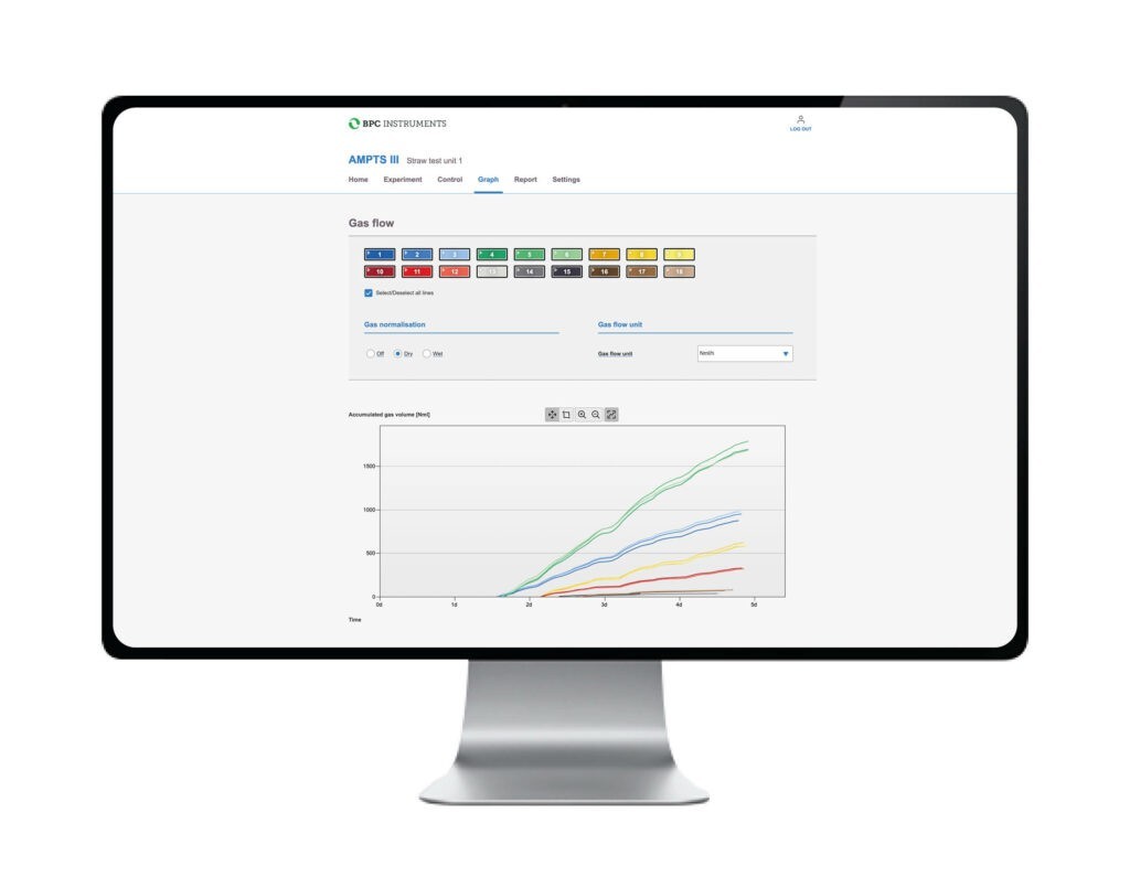 O AMPTS é uma plataforma universal para todos os testes de fermentação anaeróbica em batelada, permitindo a padronização de procedimentos de medição, interpretação de dados e  geração de relatórios. Com a compensação de temperatura e pressão em tempo real, o volume e o fluxo de biometano medidos são normalizados em condições padrão (ou seja, 0 °C, 1 atm e umidade zero) e a interferência de medição causada por variações das condições externas de medição pode ser minimizada. Isso permite que os dados de diferentes laboratórios em todo o mundo sejam facilmente comparados, criando valor além dos resultados de alta qualidade fornecidos pelo AMPTS.