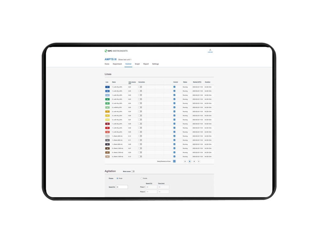 Aurora™ é a solução de software mais recente e revolucionária da BPC Instruments para monitorar testes de fermentação anaeróbica em batelada. Seu design simplificado o torna ideal para os usuários configurarem um experimento, monitorarem seu progresso e baixarem os resultados com pouco esforço. O Aurora está incluído e vem pré-instalado no AMPTS sem a necessidade de licenças de software ou instalação em computador externo.
