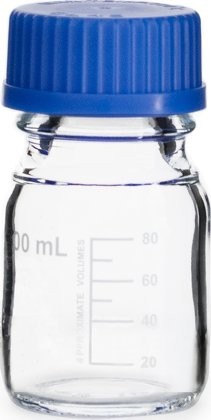 A garrafa de vidro GL 45 de 100 ml pode ser usada como vaso reator para o Gas Endeavour (ART NO 12-0000-02 e ART NO 12-0301-02) e pode ser controlada em temperatura usando um banho de água com agitação (entre em contato com o Bioprocess Control separadamente para oferta). Ele vem com uma escala de cerâmica branca de fácil leitura e queimada na lateral e pode ser autoclavado.