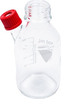 O kit de frasco de vidro personalizado de 500 ml é um frasco de vidro normal de 500 ml (ART NO 01-0101-01) modificado para que haja uma porta GL 25 adicional. Incluídos no kit também estão os seguintes itens: