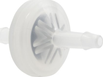 A válvula de retenção é usada para evitar o fluxo reverso de gás ou líquido, permitindo que a substância alvo flua em apenas uma direção. Um diafragma colocado dentro do invólucro de plástico abre quando a substância flui em uma direção e fecha quando a substância flui na outra direção. A direção do fluxo é indicada por uma seta.